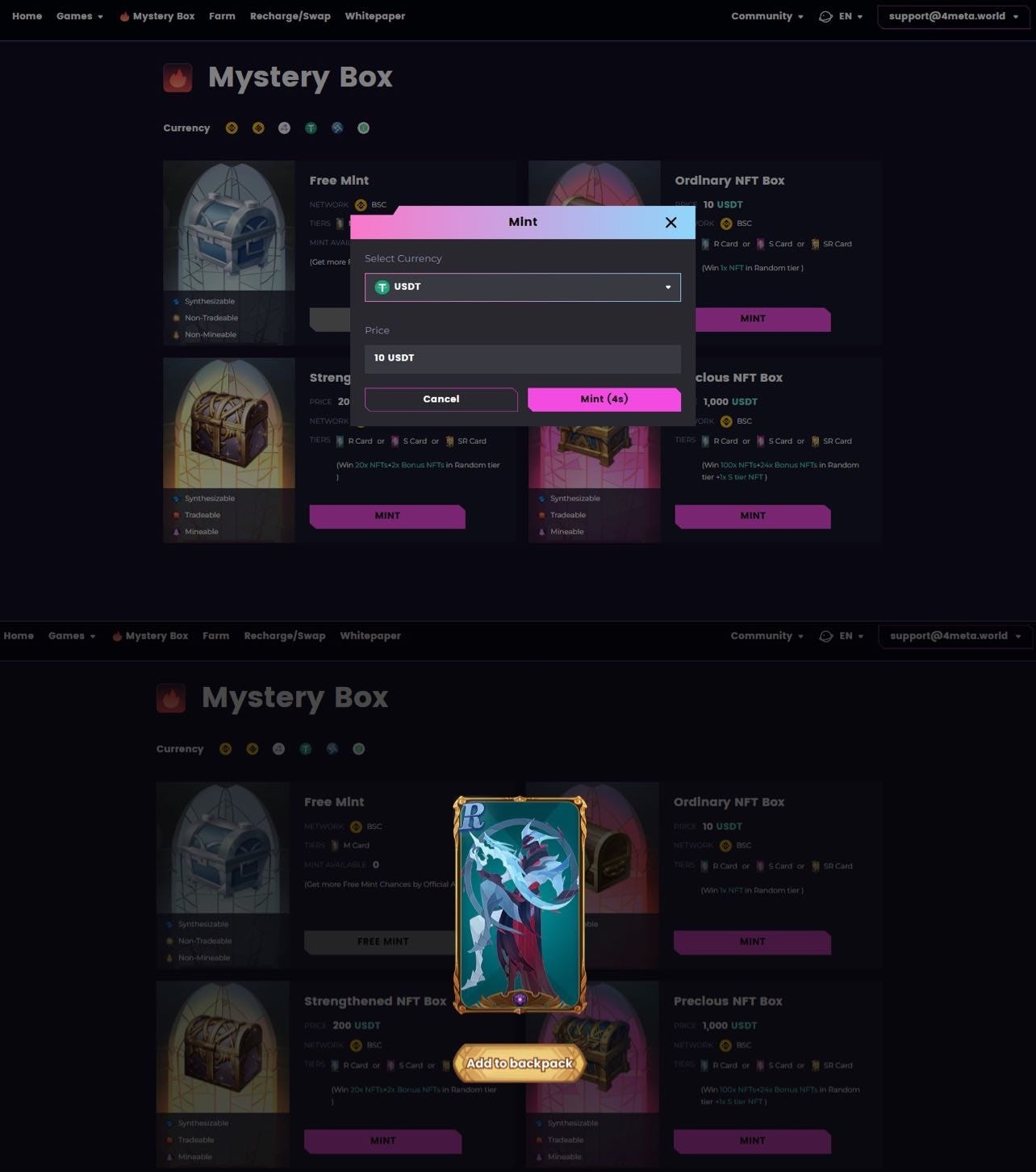 Login your For Metas account and open the page of https://www.4metas.io/#/mysteryBox then follow the steps to buy (Check the benefits and turorial of buying mystery boxes: ForMetas Tutorial | How to buy the mystery box? | by For Metas Official | Dec, 2022 | Medium )